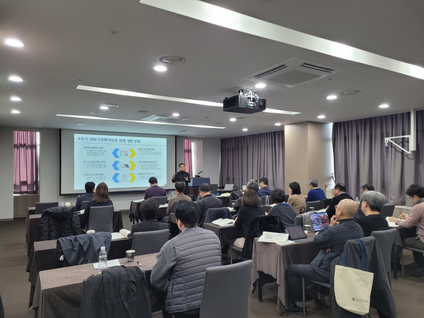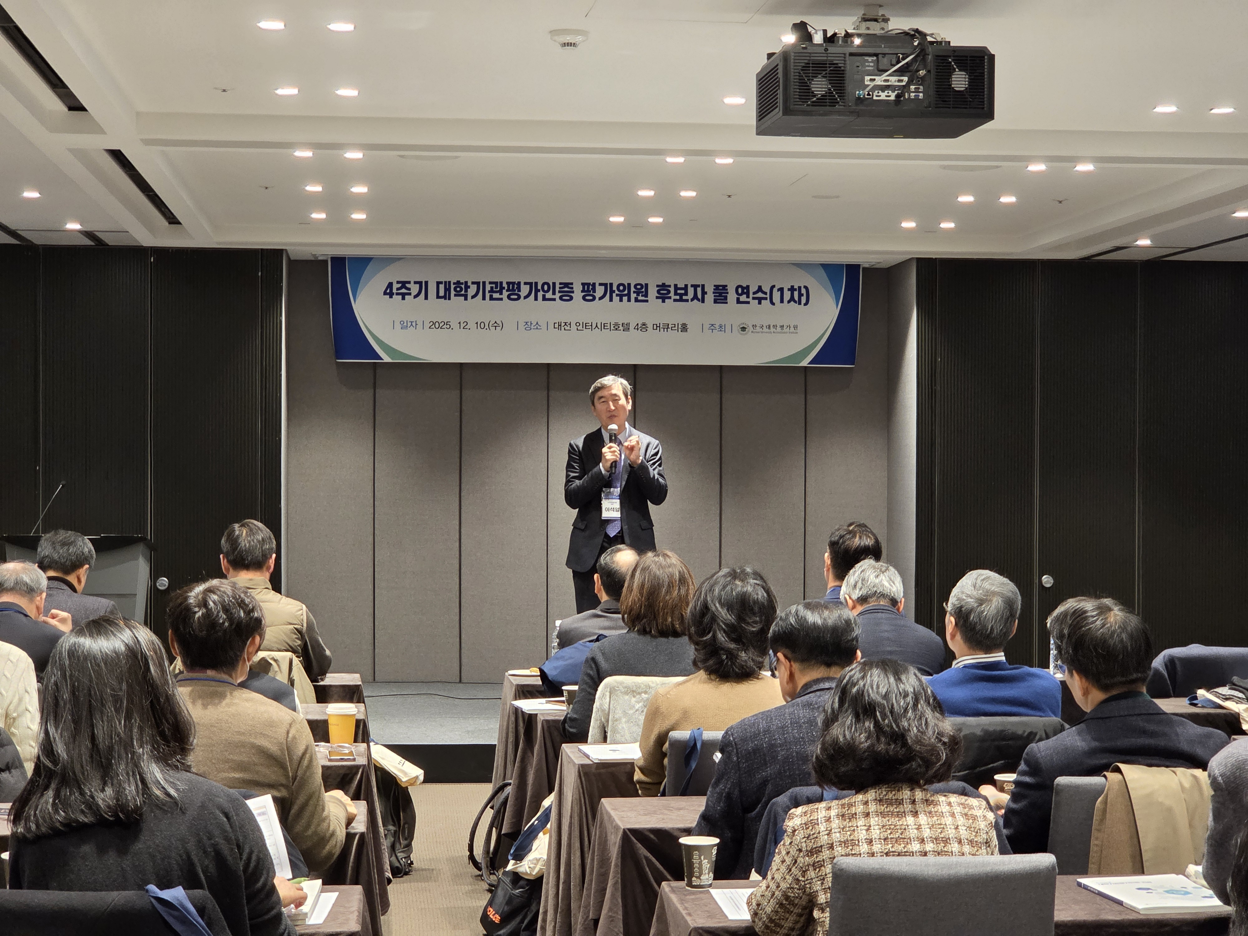한국대학교육협의회 병설 한국대학평가원(원장 이석열, 이하 평가원)은 4주기 대학기관평가인증 평가위원 풀(POOL) 구성을 통한 2026년 평가 진행에 대비하고, 평가 영역에 대한 심도있는 이해로 평가위원의 전문성을 강화하고, 이를 통한 평가 결과의 객관성 확보 및 신뢰성 제고를 위한 「4주기 대학기관평가인증 평가위원 후보자 풀(POOL) 연수」 를 1차와 2차 각각 실시하였다. 1차 연수는 2025년 12월 10일(수), 2차 연수는 2026년 2월 24일(화)와 2월 25일(수) 양일 간 택일하여 오전 10시부터 오후 5시까지, 호텔 인터시티(대전시 유성구 소재)에서 진행되었다. 1차 연수 참여인원은 평가위원 후보자 109명, 평가원 8명, 강사 5명 총 122명이, 2차 연수 참여인원은 평가위원 후보자 175명, 평가원 8명, 강사 5명 총 188명이 각각 참여하였다.