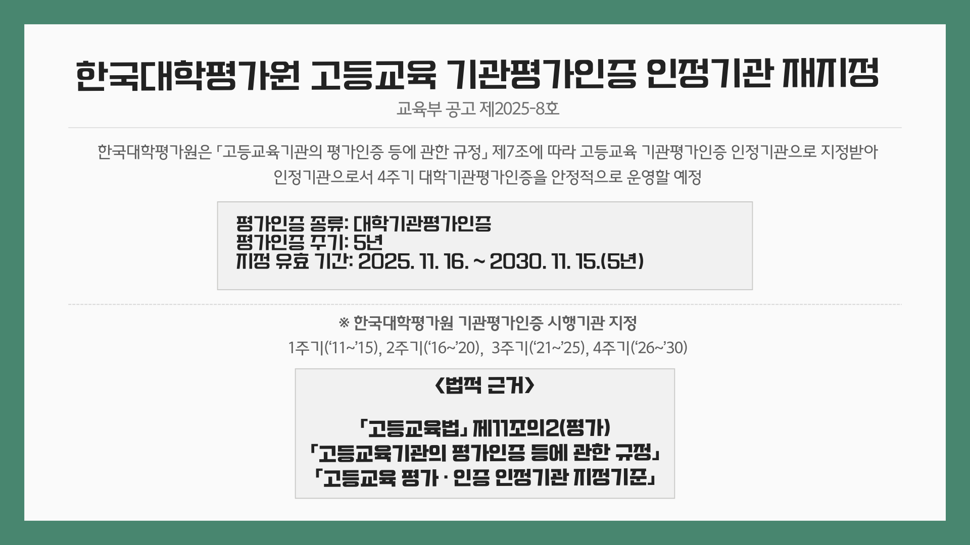 4주기 대학기관평가인증 평가위원 후보자 풀(POOL) 연수 (1, 2차)